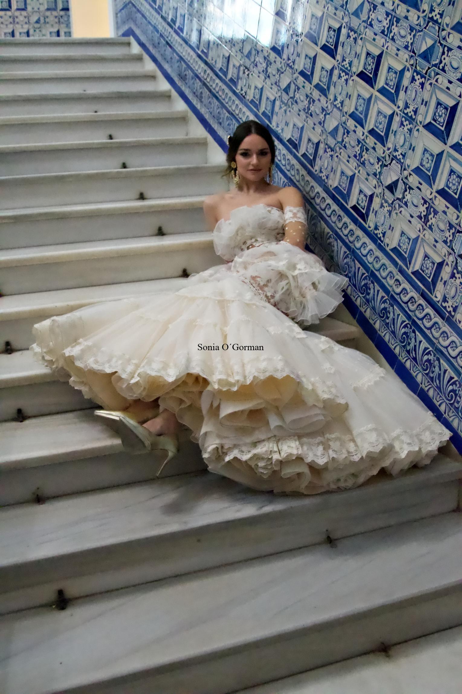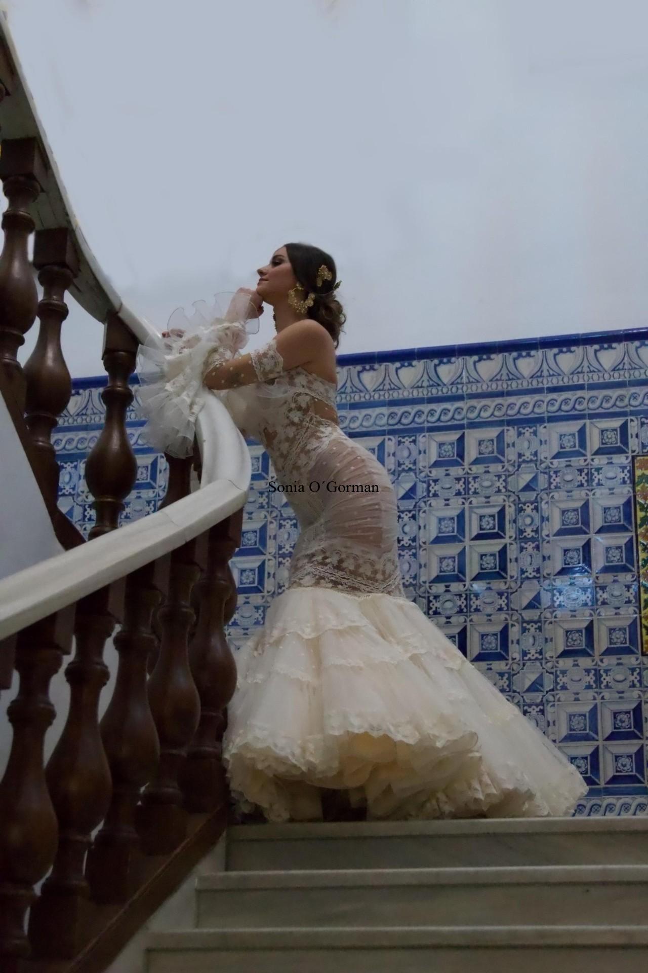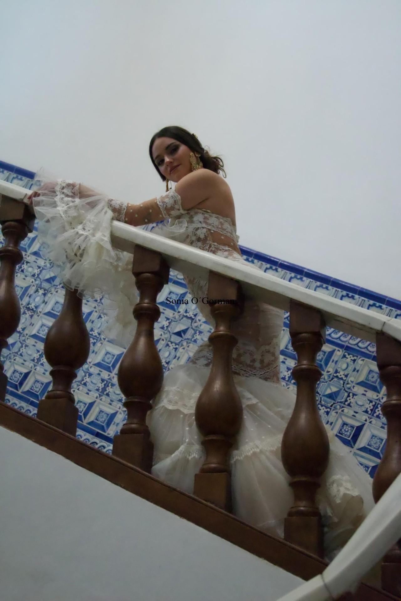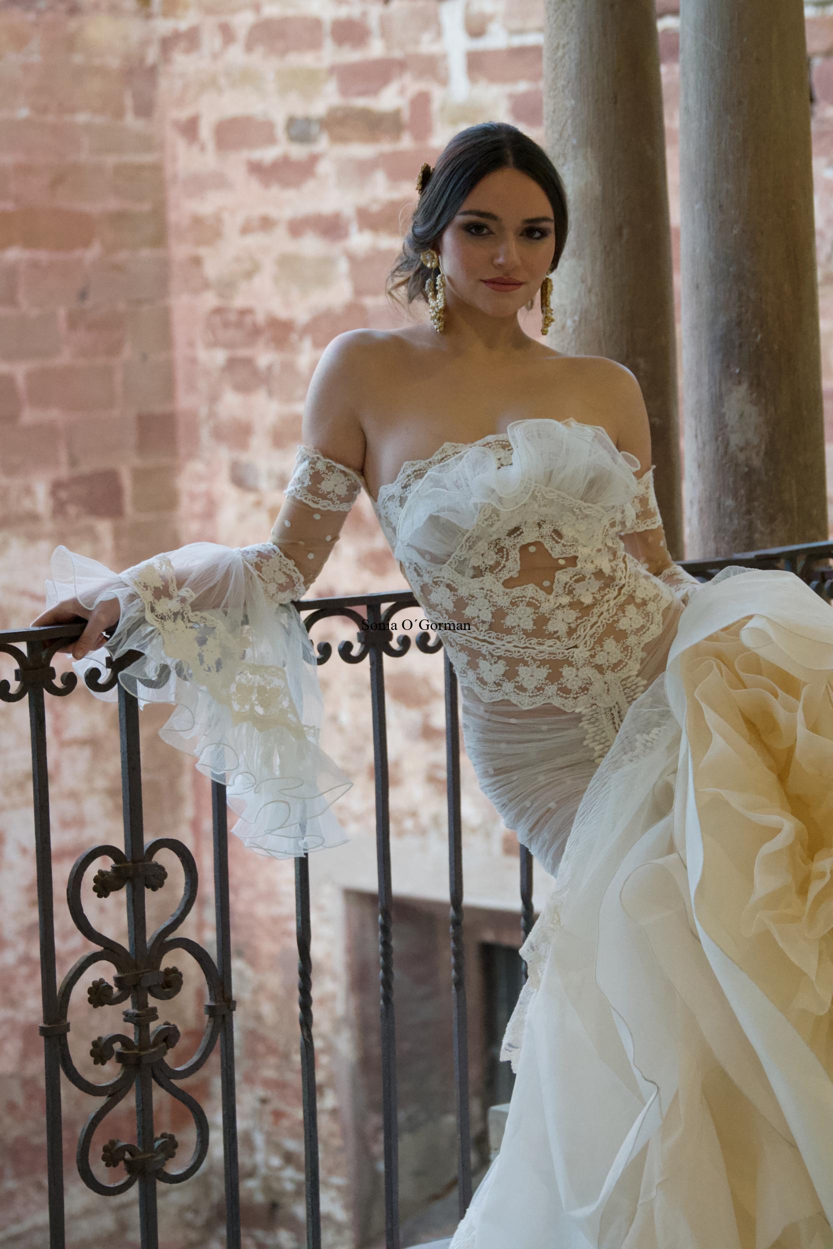 A través del lente del fotógrafo, se ha inmortalizado la belleza de este diseño y su musa. Cada imagen es una obra de arte que destila romance, elegancia y un toque de encanto flamenco. La luz, la composición y la atmósfera se combinan para crear un escenario de ensueño donde el vestido cobra vida.