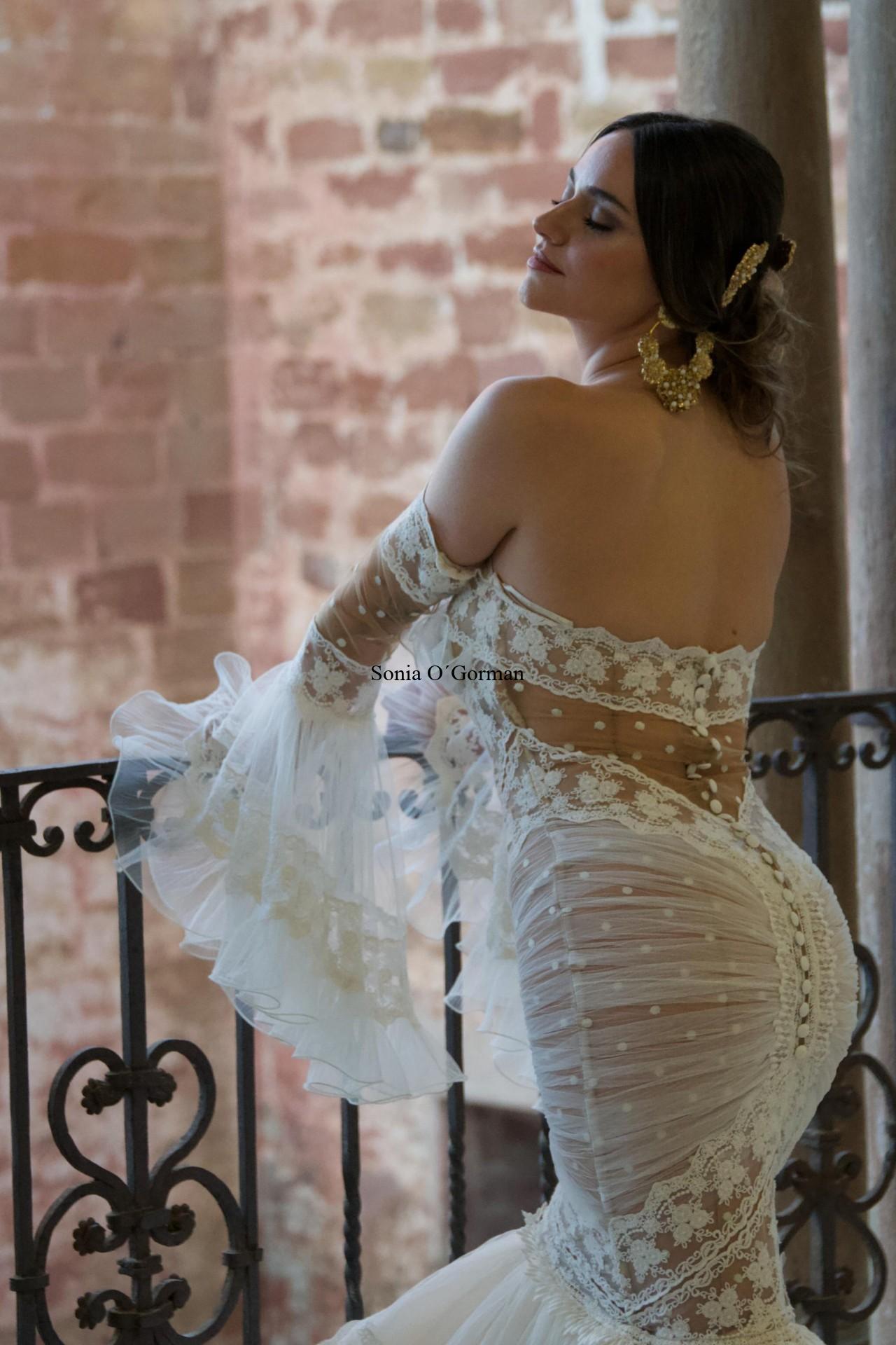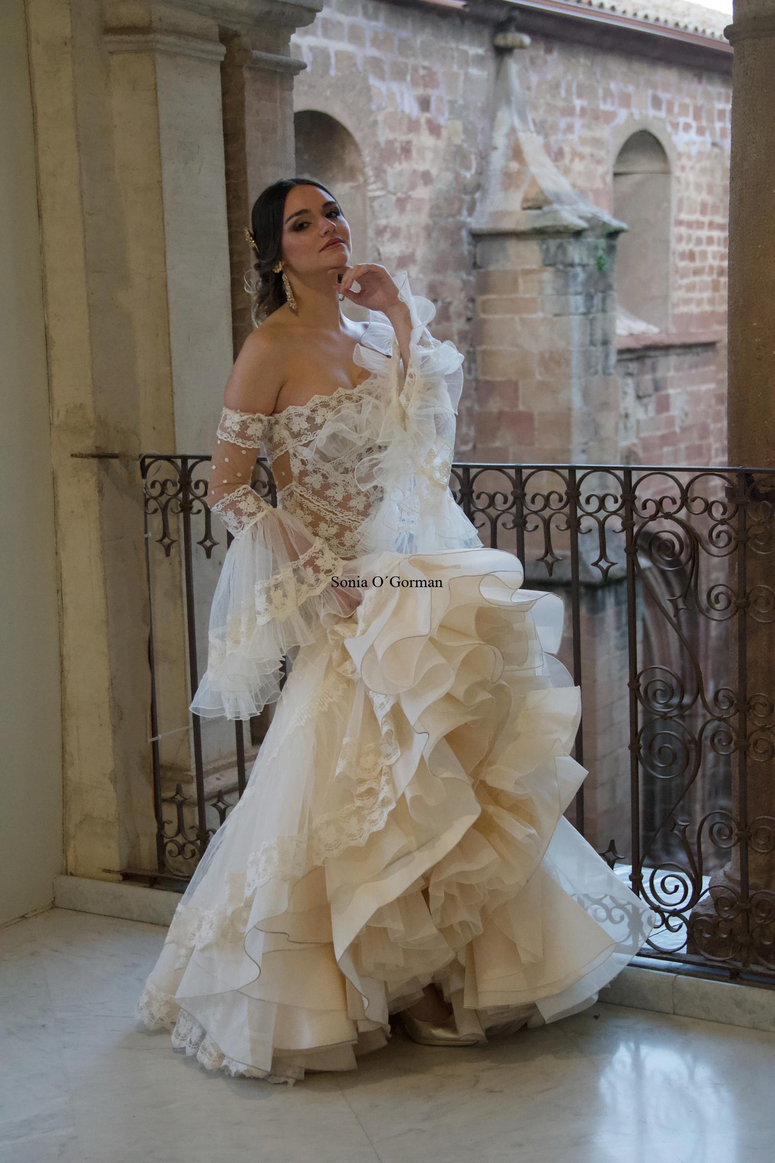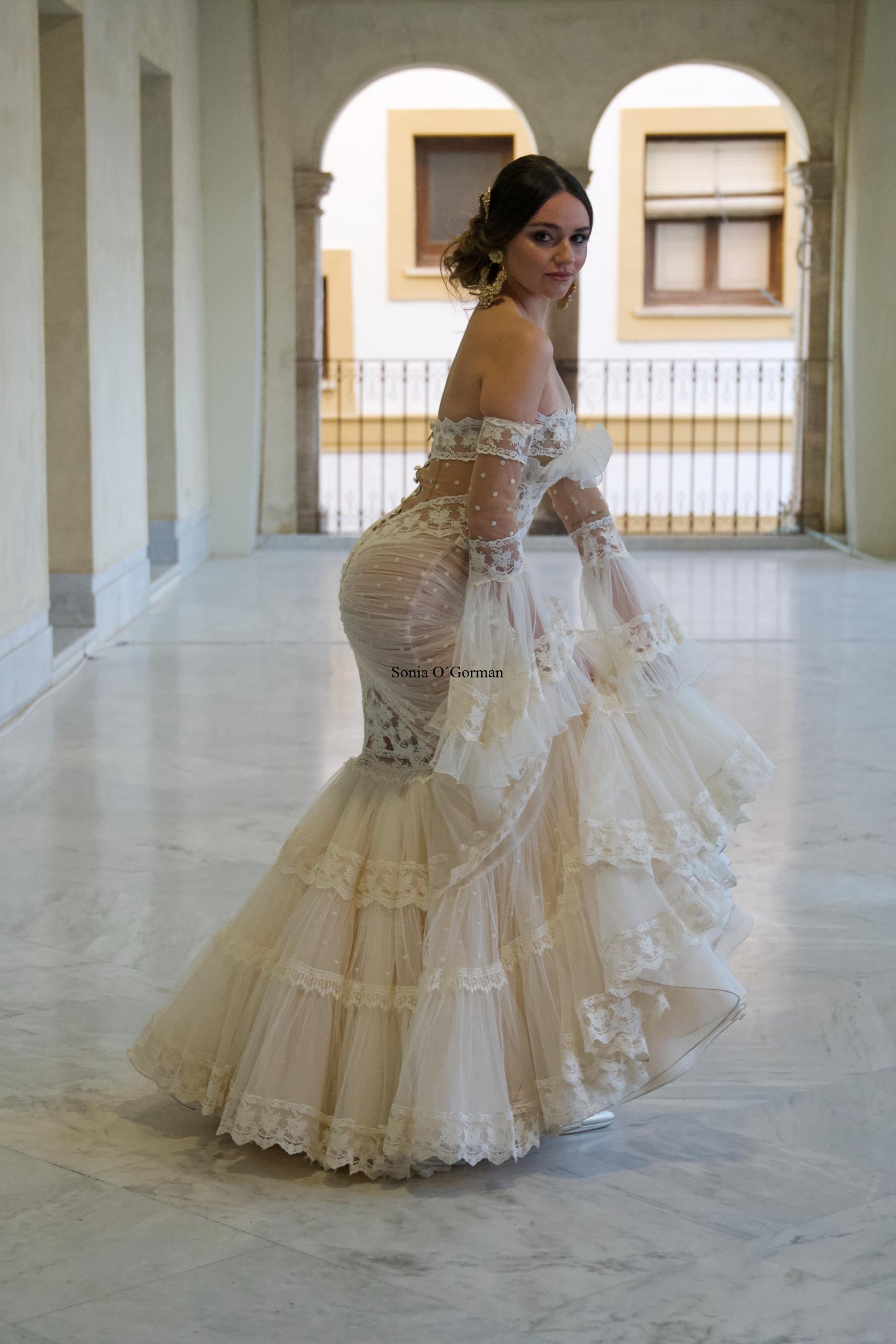 A través del lente del fotógrafo, se ha inmortalizado la belleza de este diseño y su musa. Cada imagen es una obra de arte que destila romance, elegancia y un toque de encanto flamenco. La luz, la composición y la atmósfera se combinan para crear un escenario de ensueño donde el vestido cobra vida.