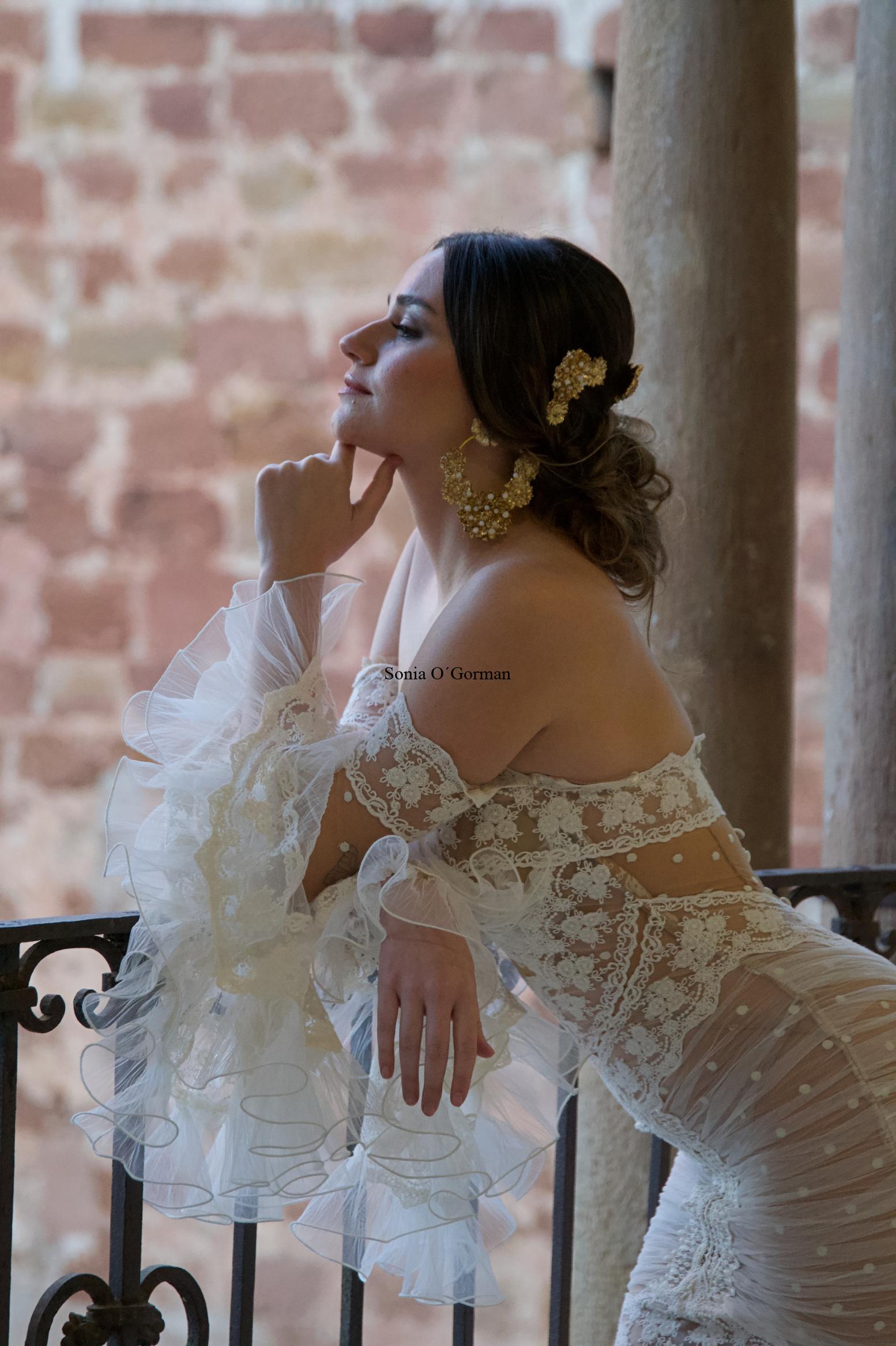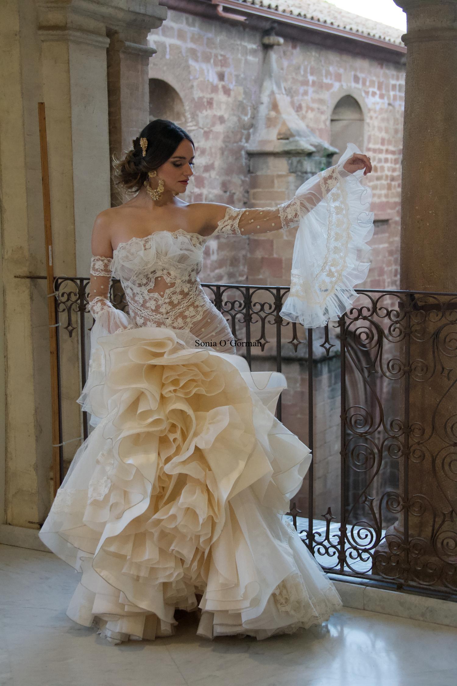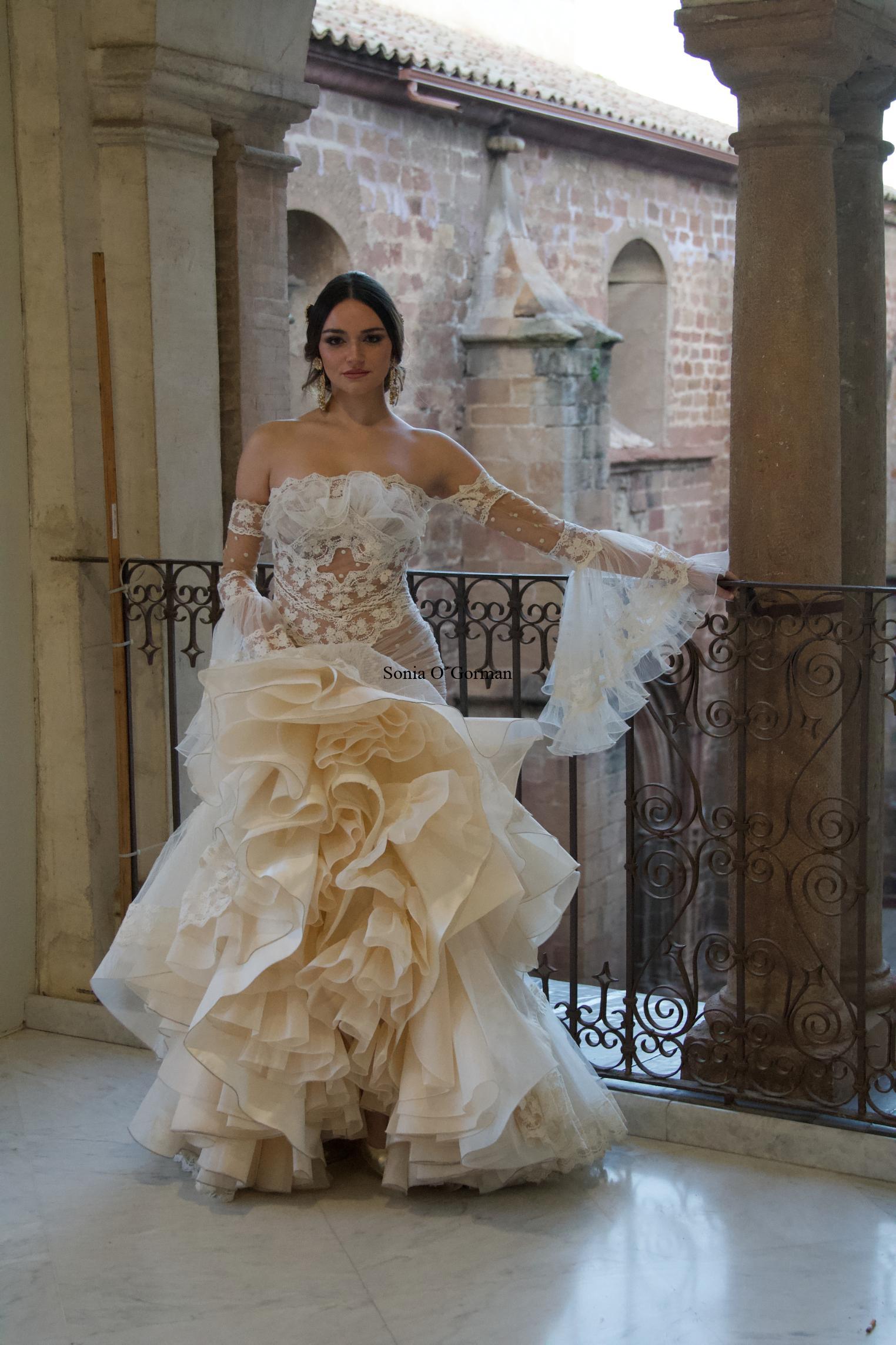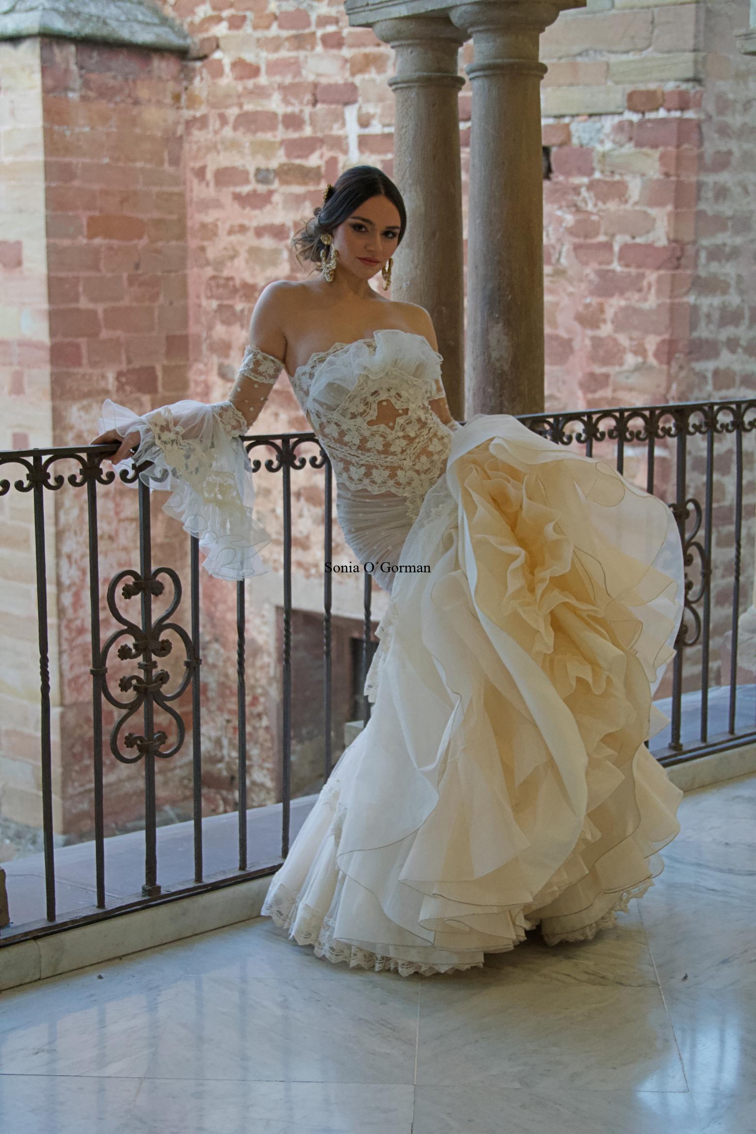 A través del lente del fotógrafo, se ha inmortalizado la belleza de este diseño y su musa. Cada imagen es una obra de arte que destila romance, elegancia y un toque de encanto flamenco. La luz, la composición y la atmósfera se combinan para crear un escenario de ensueño donde el vestido cobra vida.