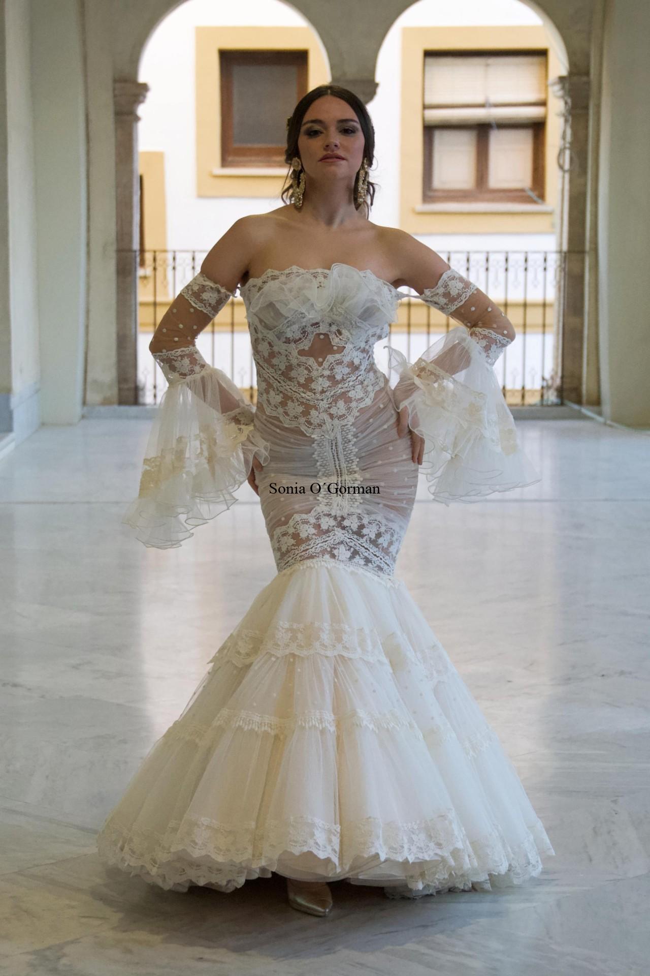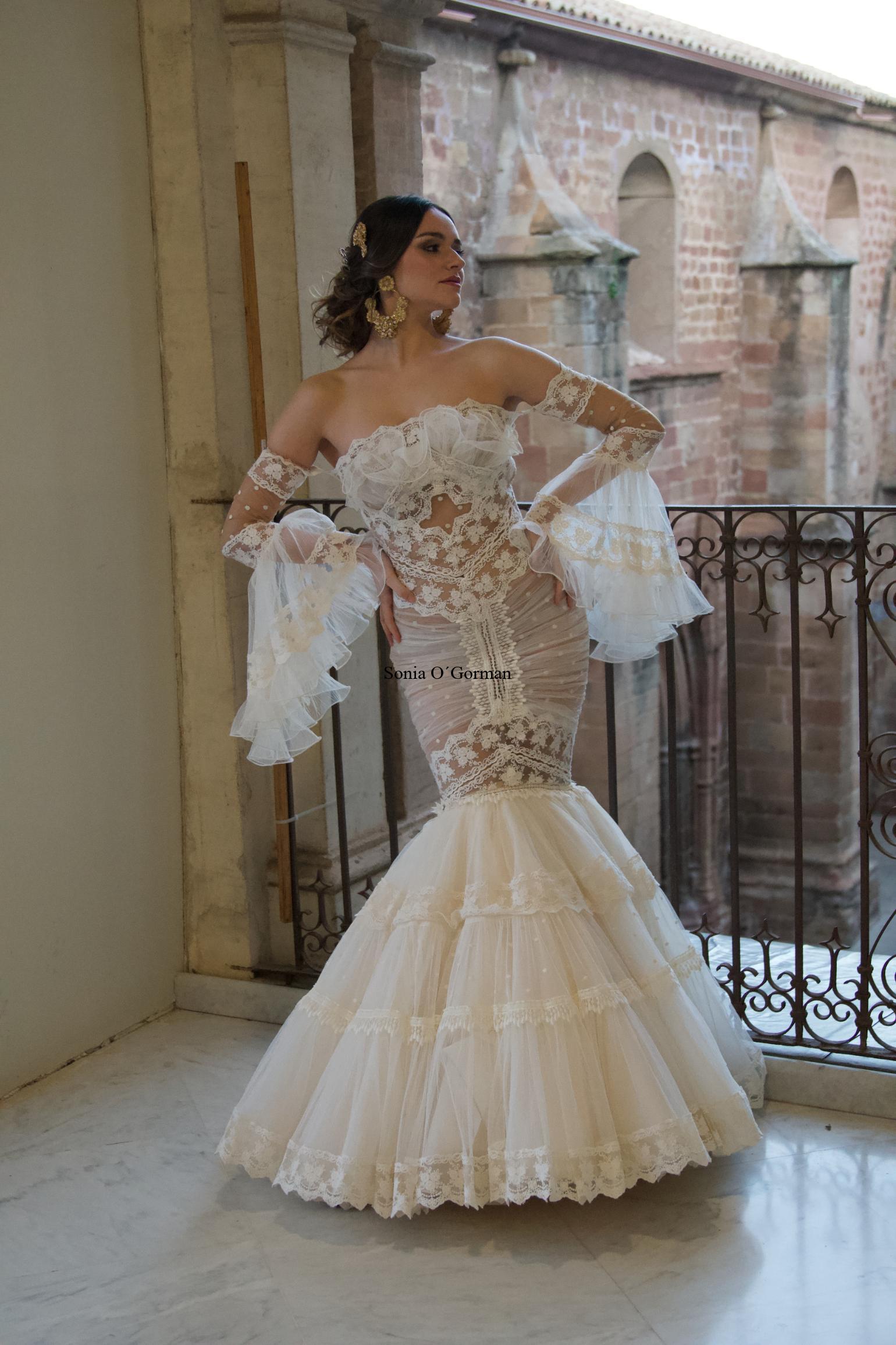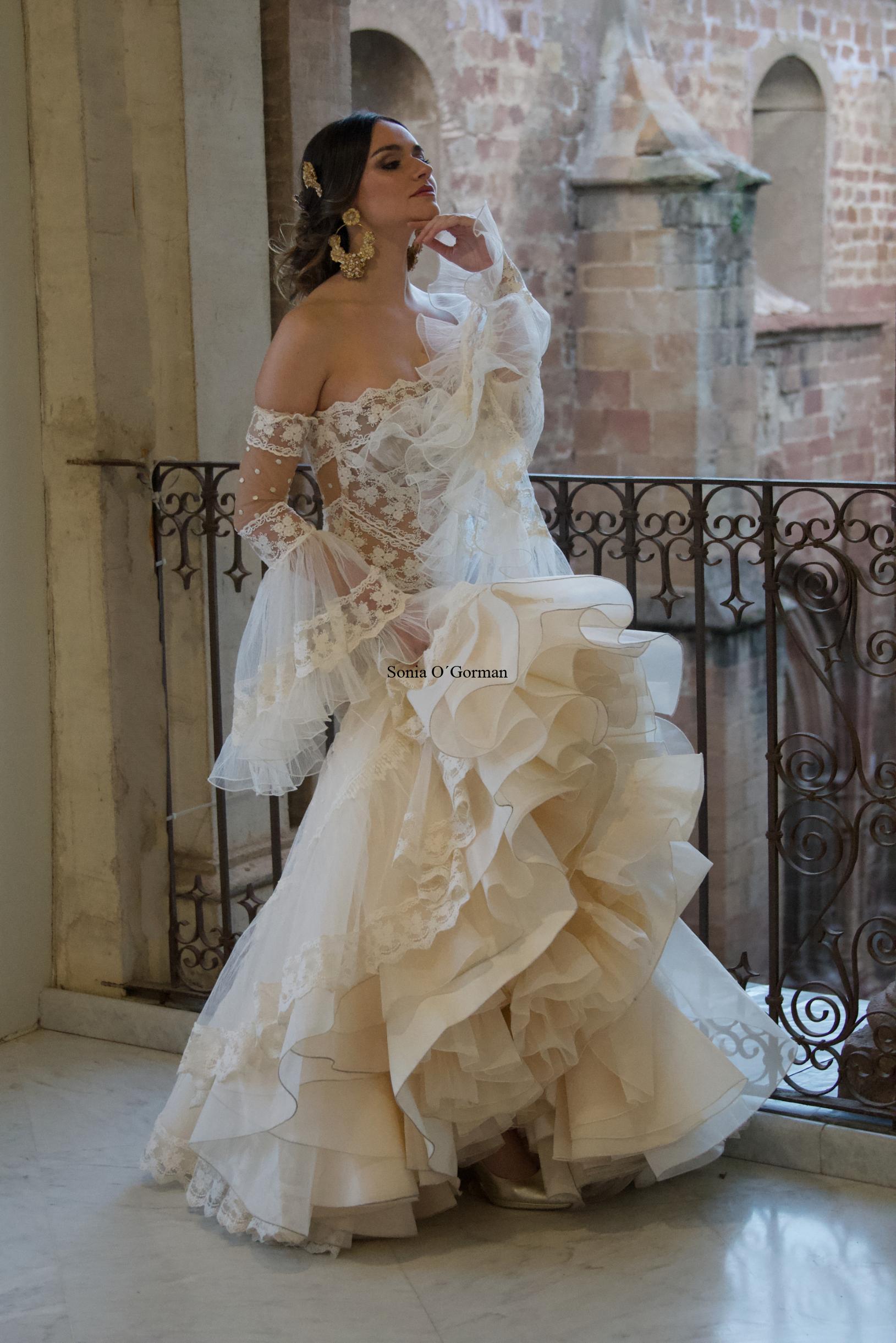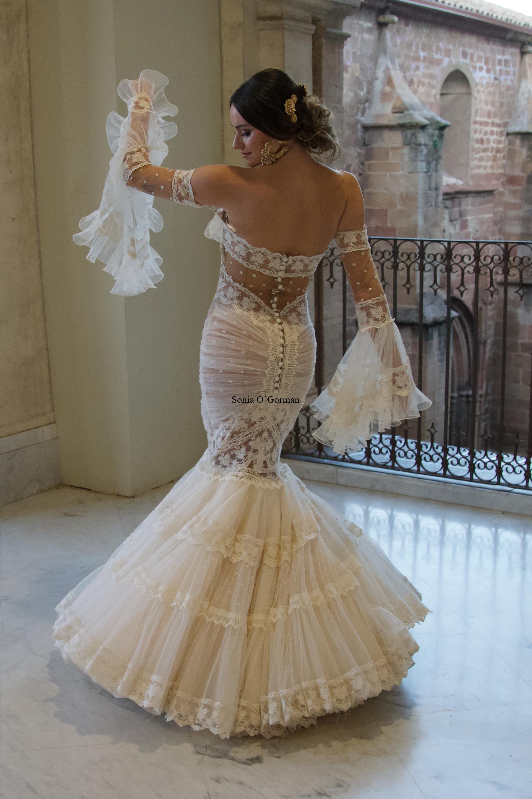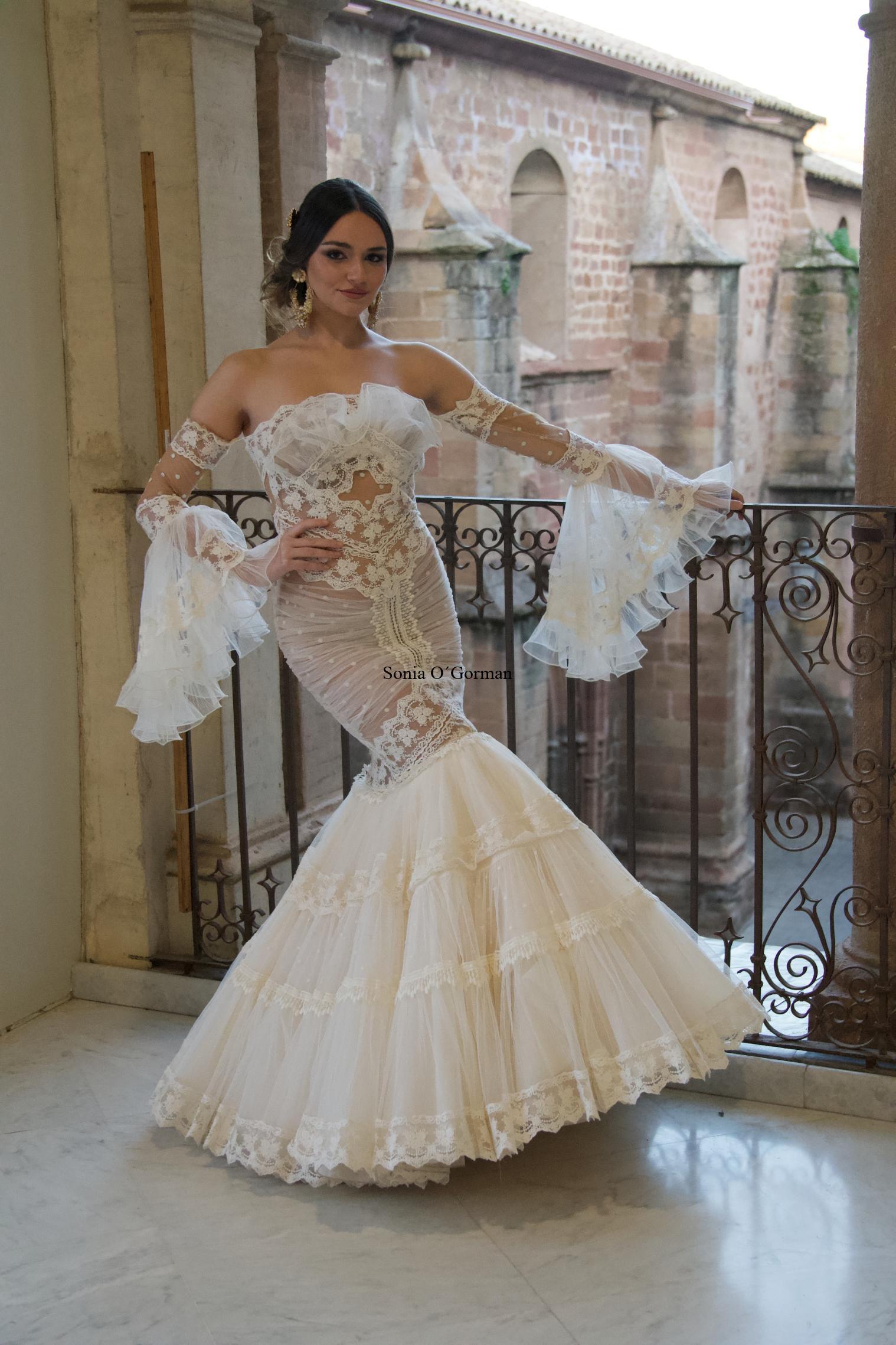 En esta ocasión, Teresa Ninu presenta una joya de su colección: un deslumbrante diseño nupcial que encarna la esencia del romance y la pasión del flamenco. Confeccionado con los más finos tejidos y adornos, este vestido de novia es una oda a la feminidad y la belleza atemporal.