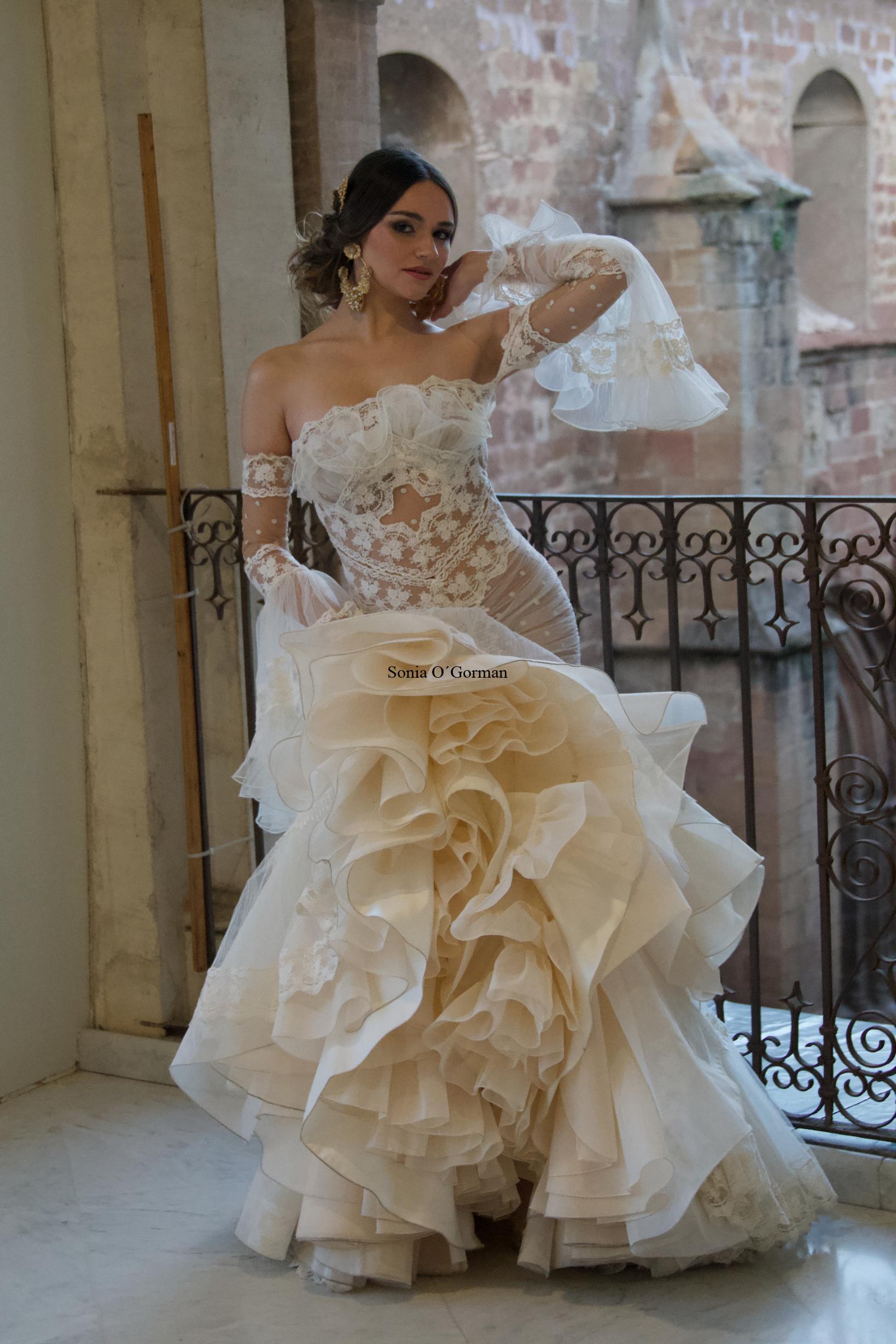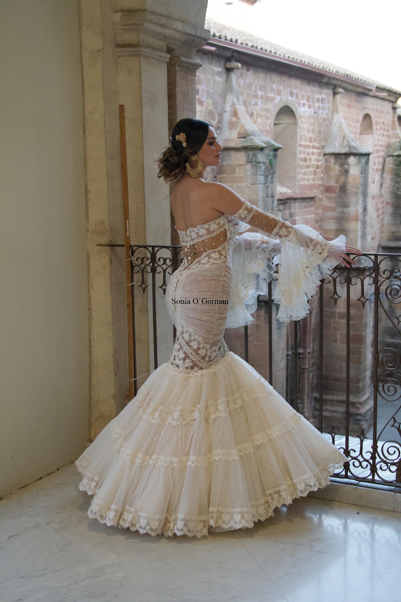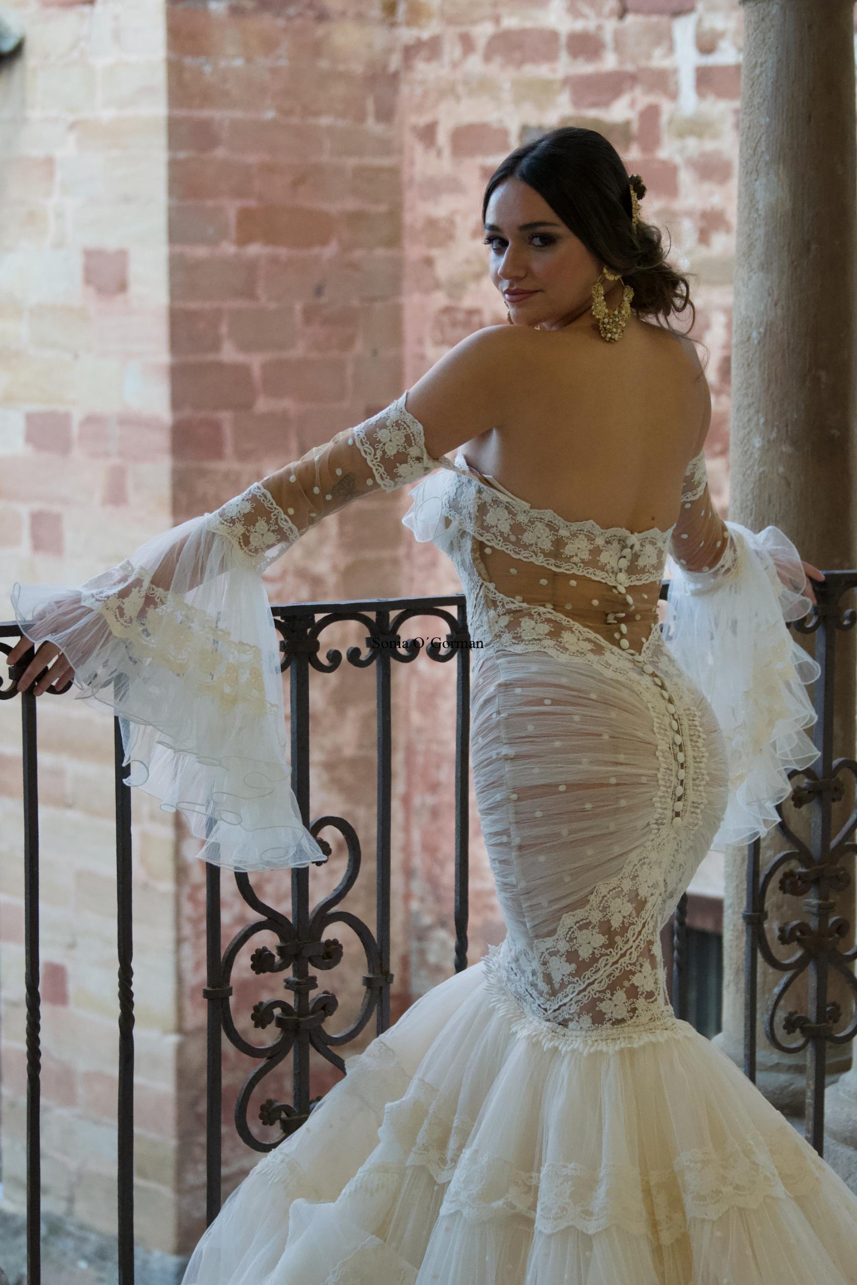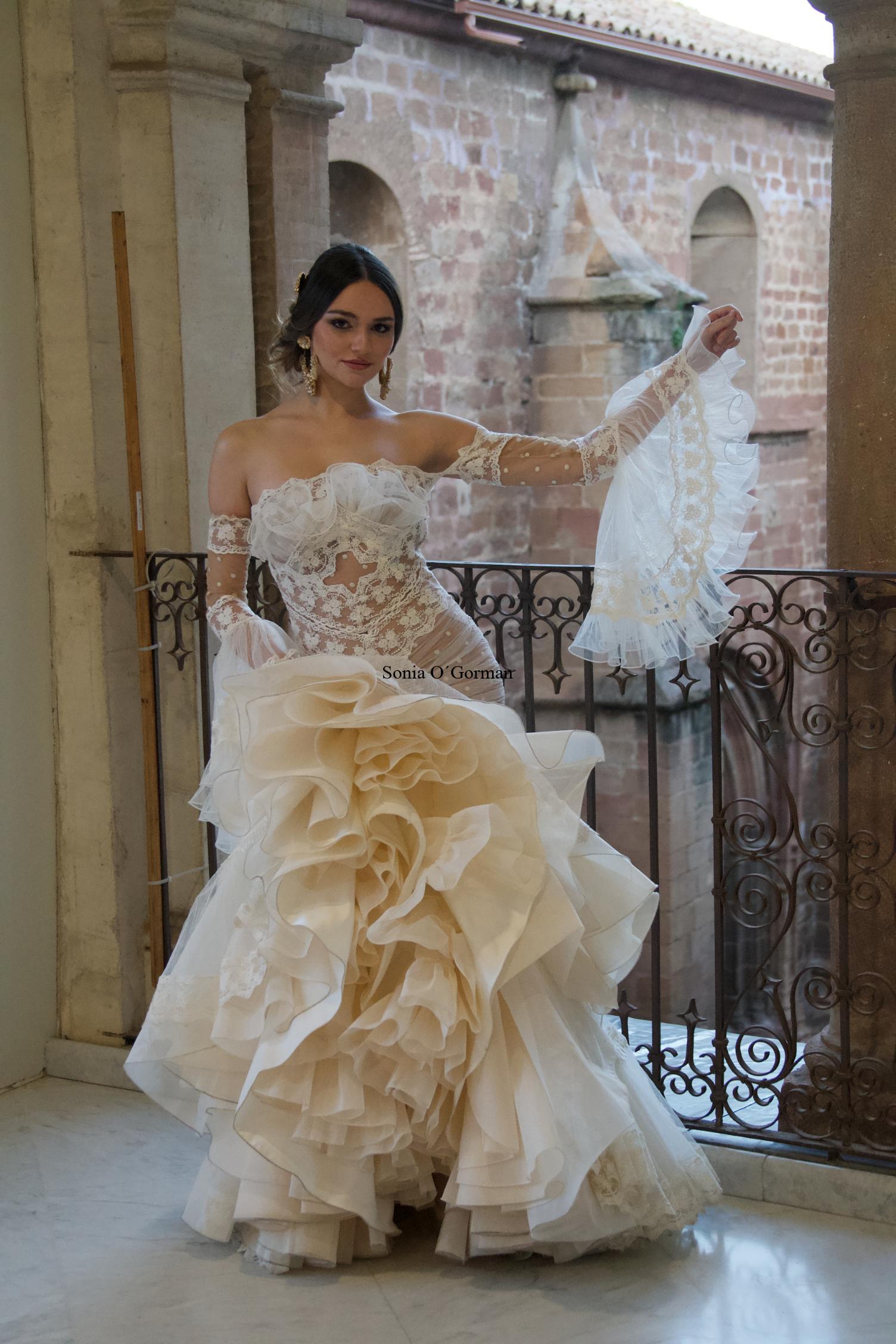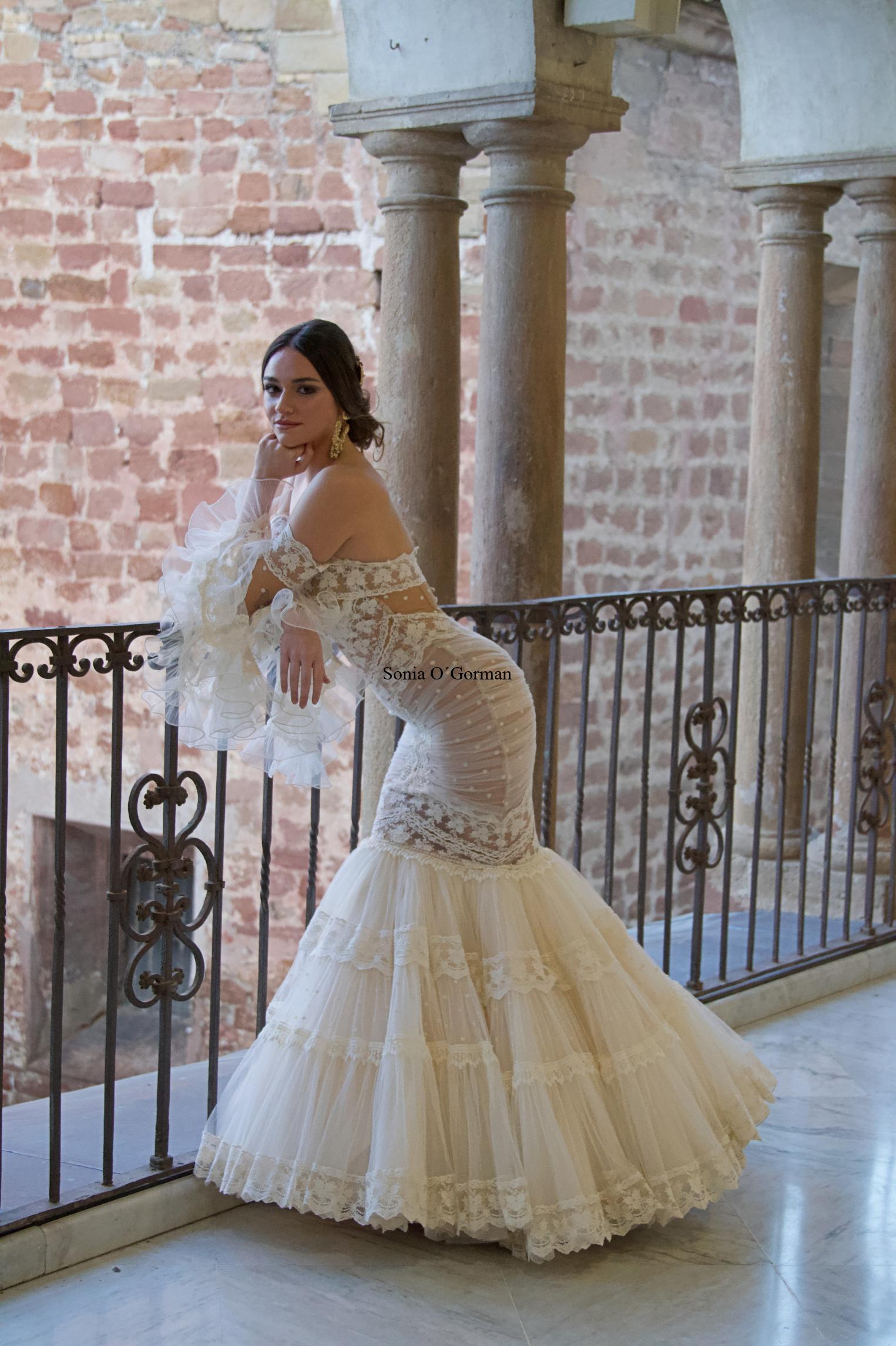 En resumen, estas fotografías son más que simples imágenes; son un tributo a la pasión y el talento de Teresa Ninu como diseñadora de moda flamenca. Su creatividad y su visión se reflejan en cada costura, en cada pliegue de este diseño nupcial, mientras que su hija personifica la belleza y la gracia que lo hacen único. Juntas, estas fotografías son un testimonio del legado de elegancia y sofisticación que Teresa Ninu deja en el mundo de la moda.