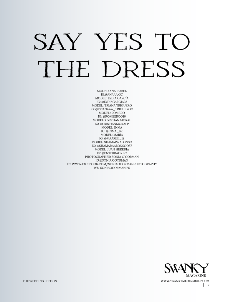 Es una publicación de primer nivel dedicada a mostrar la elegancia y la grandeza de las bodas. Cada número presenta fotografías impresionantes, historias de amor inspiradoras y las últimas tendencias en moda y decoración para bodas. Con el objetivo de brindar a los lectores una guía completa para planificar su día especial, Swanky weddings Magazine es un disfrute esencial tanto para las novias, los novios como para los entusiastas de las bodas.